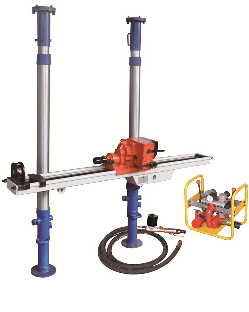 一般礦井在掘進前都要進行超前探放水,利用氣動架柱鉆機等探水設備打幾十米甚至一百米的探水孔,根據鉆頭的推進速度、巖屑成分等地質資料,初步斷定巷道周圍的水質水量,因此氣動架柱鉆機是預防突水、涌水等災害的發(fā)生主要工具。