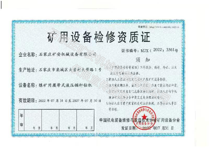 石家莊礦安機(jī)械設(shè)備有限公司成立于2011年3月,公司位于風(fēng)景優(yōu)美、科技發(fā)達(dá)、交通便利的石家莊市欒城區(qū),是一家專(zhuān)注生產(chǎn)煤礦井下支護(hù)機(jī)具(錨桿鉆機(jī))和安全鉆機(jī)(防突,架柱等)及氣動(dòng)隔膜泵等礦用機(jī)械設(shè)備的********,是國(guó)內(nèi)煤礦機(jī)械裝備的生產(chǎn)商和服務(wù)商,根據(jù)用戶(hù)需求提供井下適用的鉆機(jī)施工解決方案。公司致力于打造研發(fā)、制造、銷(xiāo)售、服務(wù)為一體的現(xiàn)代化企業(yè),全心全意為煤礦生產(chǎn)保駕護(hù)航。 ? 公司建有裝配車(chē)間、機(jī)加車(chē)間和調(diào)試車(chē)間,擁有嚴(yán)格的質(zhì)量控制體系、先進(jìn)的產(chǎn)品開(kāi)發(fā)系統(tǒng)、完善的試驗(yàn)檢測(cè)設(shè)施、良好的售后服務(wù)保障。先后與中煤科工集團(tuán)沈陽(yáng)研究院、西安研究院、太原理工大學(xué)、燕山大學(xué)等知名院校建立了緊密的合作關(guān)系。 ? 公司產(chǎn)品主要銷(xiāo)往山西、陜西、山東、內(nèi)蒙古、黑龍江、云南、貴州等七十多個(gè)礦區(qū)和地方煤礦,擁有一支成熟的售后技術(shù)團(tuán)隊(duì),并且和中煤集團(tuán)、華電煤業(yè)集團(tuán)、華潤(rùn)煤業(yè)集團(tuán)、潞安集團(tuán)、山西焦煤、淮北礦業(yè)等國(guó)內(nèi)知名企業(yè)達(dá)成長(zhǎng)期合作關(guān)系。 ? 公司始終秉持“讓煤礦生產(chǎn)更安全”的發(fā)展使命,力求誠(chéng)信與創(chuàng)新,追求卓越與完美,深知“實(shí)實(shí)在在、心無(wú)旁騖做實(shí)業(yè)”,這才是本分!石家莊礦安機(jī)械設(shè)備有限公司愿與您攜手共進(jìn),共同發(fā)展!為客戶(hù)創(chuàng)造價(jià)值,提供優(yōu)質(zhì)的產(chǎn)品和*佳的服務(wù)是我們永無(wú)止境的理念!